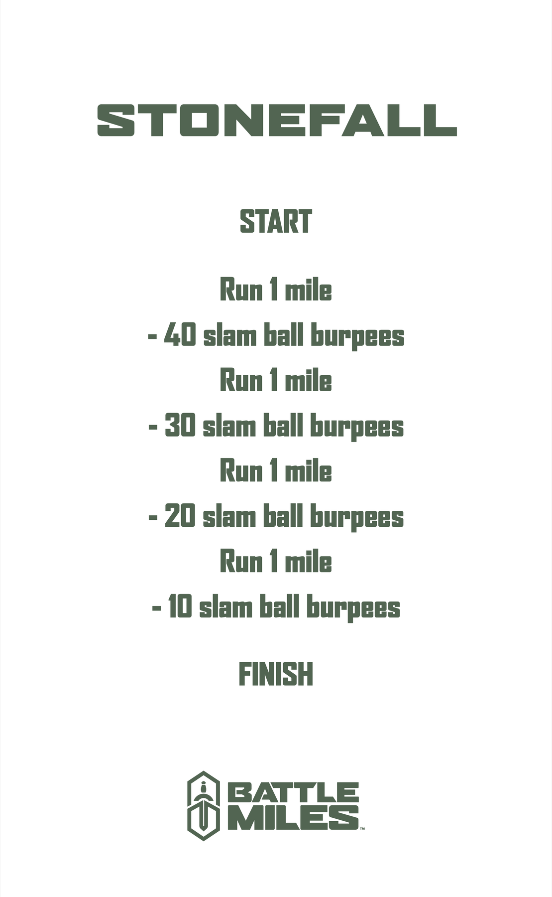 Introducing Stonefall! A unique race involving 4 miles of running with slam ball burpees every mile.